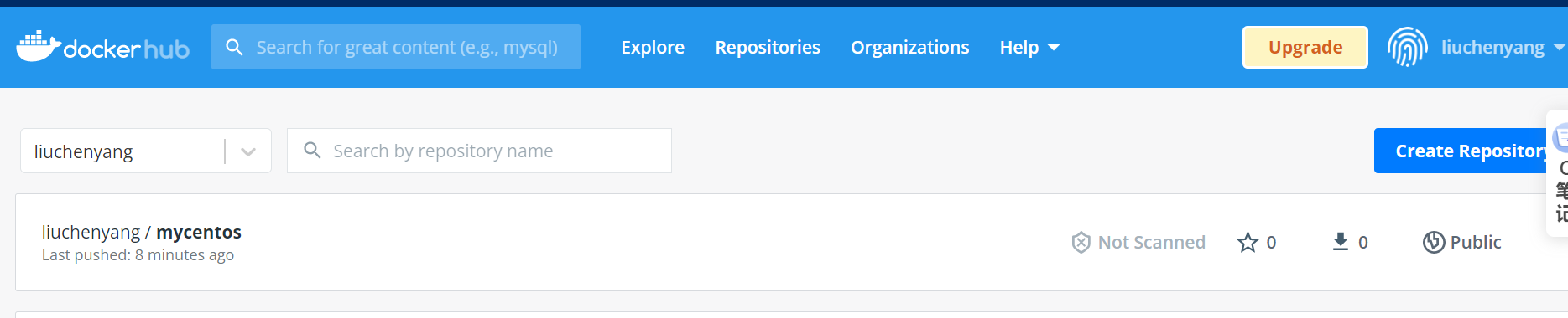 最后就可以看到我们的镜像存储库了。