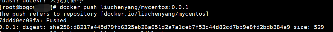 docker push liuchenyang/mycentos:tagname