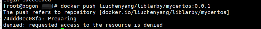 Login Succeeded一定要注意自己上传的时候镜像名称对不对,还有路径对不对,我这边解决这个问题之后还是会报这个错,找了半天才找出来,还有一个问题就是给镜像打包的时候名字有问题,因为我创建了一个liblarby,上传镜像的时候就多了一层目录,所以因为名字不正确(可以查看最上面的第一张图片),才会出现相同的报错,最后,重新push一下,就ok了。(tagname是你的镜像的版本号)