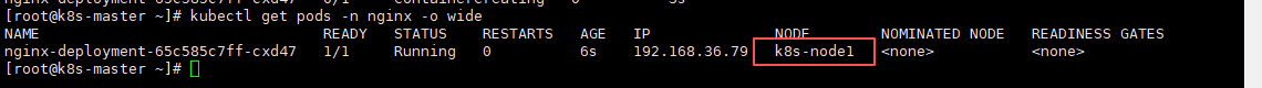可以看到nginx服务已经在k8s-node1上启动了,证明成功了;