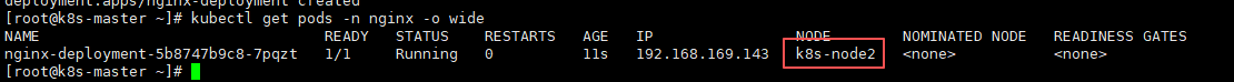 可以看到nginx服务已经在k8s-node2上启动了,证明成功了;