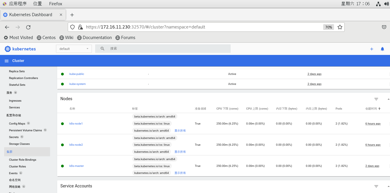 service/kubernetes-dashboard ClusterIP 10.0.0.152 <none> 443/TCP 20mpod的状态都为Running正常,然后需要配置远程访问才可以进行访问;