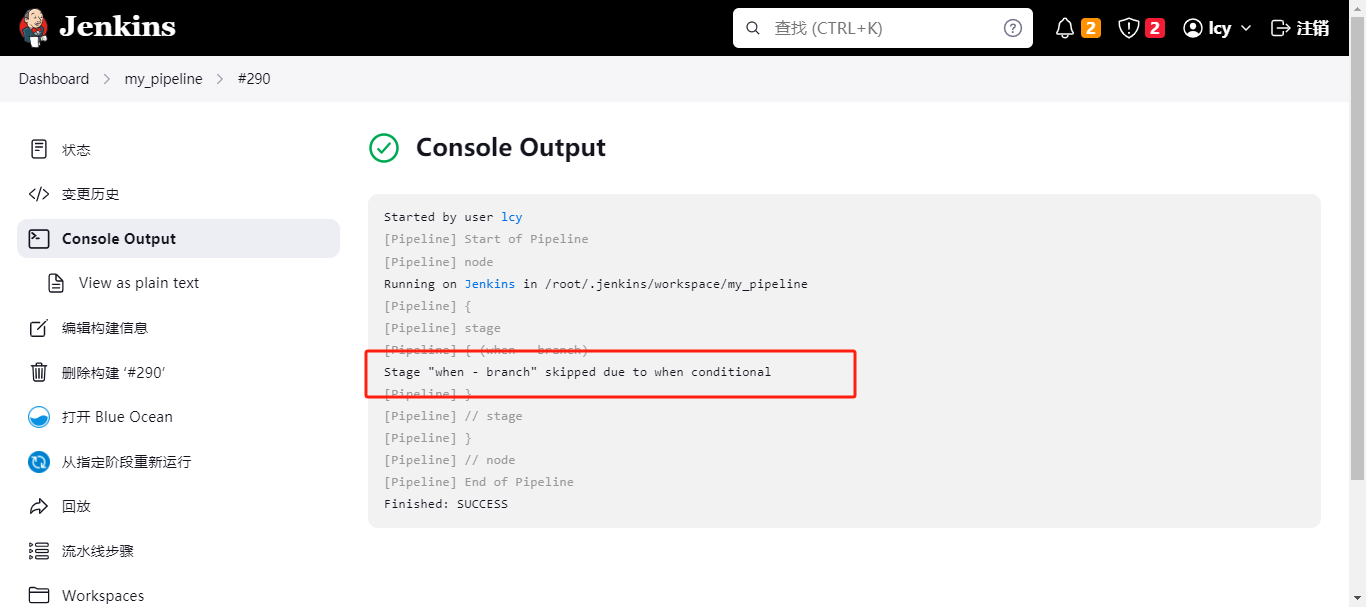 }如果是在master分支上执行,就执行此操作;因为我们没有使用多分支,所以这个执行结果是跳过此执行操作;