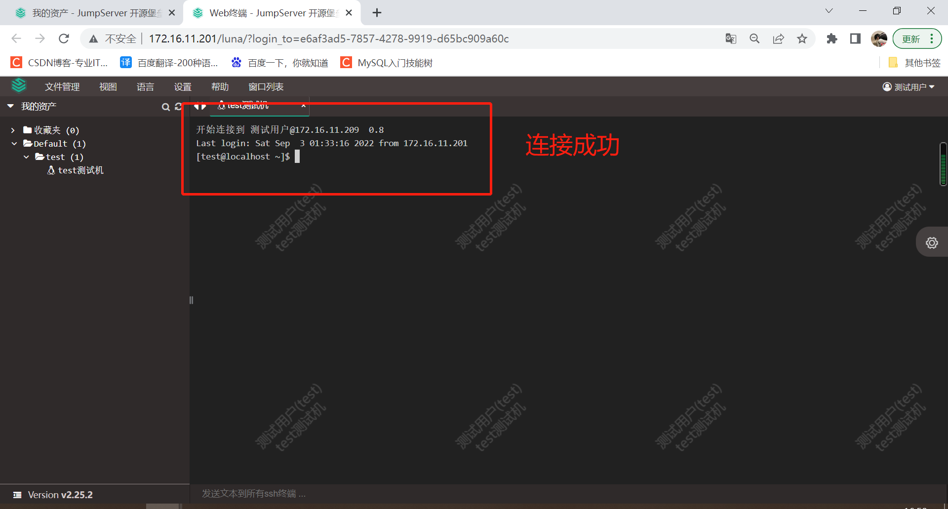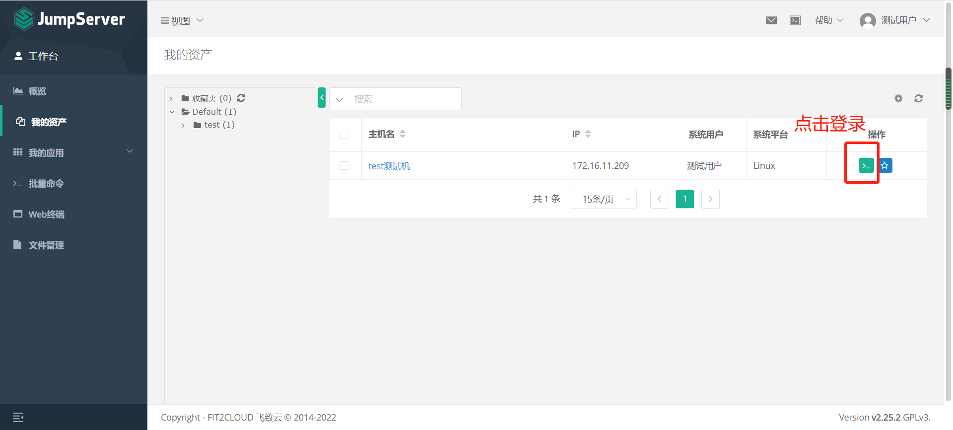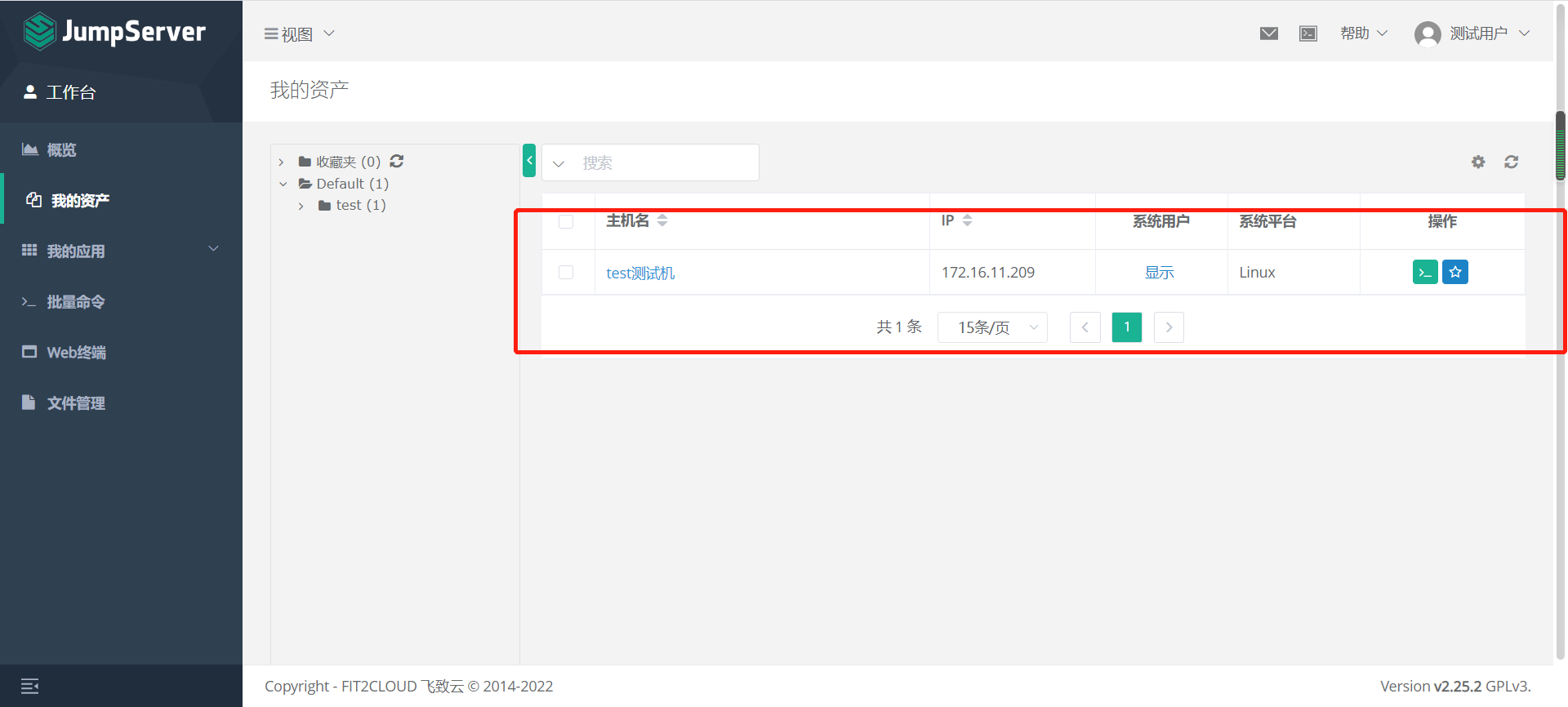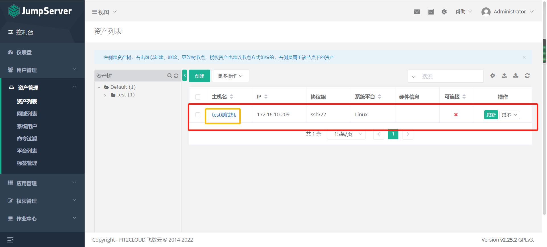 给资产授权完成之后,我们在返回看资产管理中的资产列表,点进资产,测试连接是否可用;