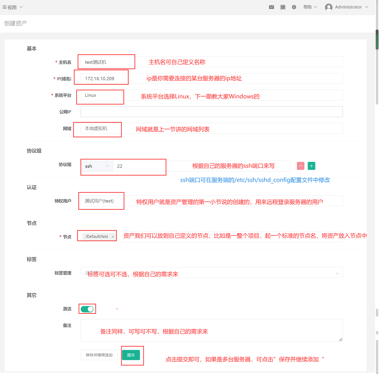 接下来我们就开始添加资产了;本篇主要讲的是添加linux主机资产;