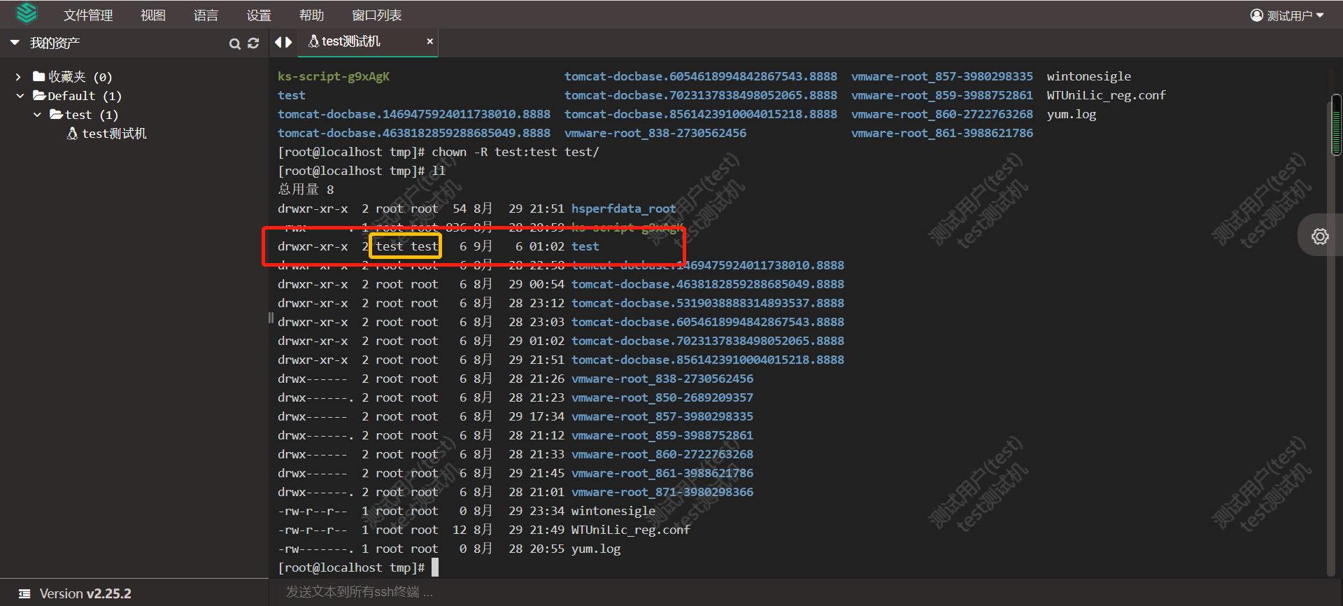 上传完成返回服务器进入test目录就可以看到传进来的文件了;
