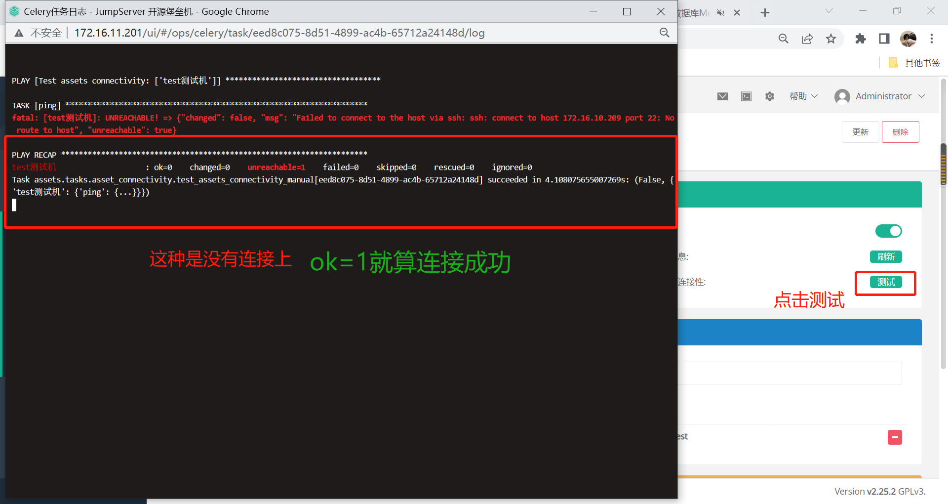 现在连接不上是因为还没有给该资产授权;等我们给资产授权再反过来测试他的连接性;