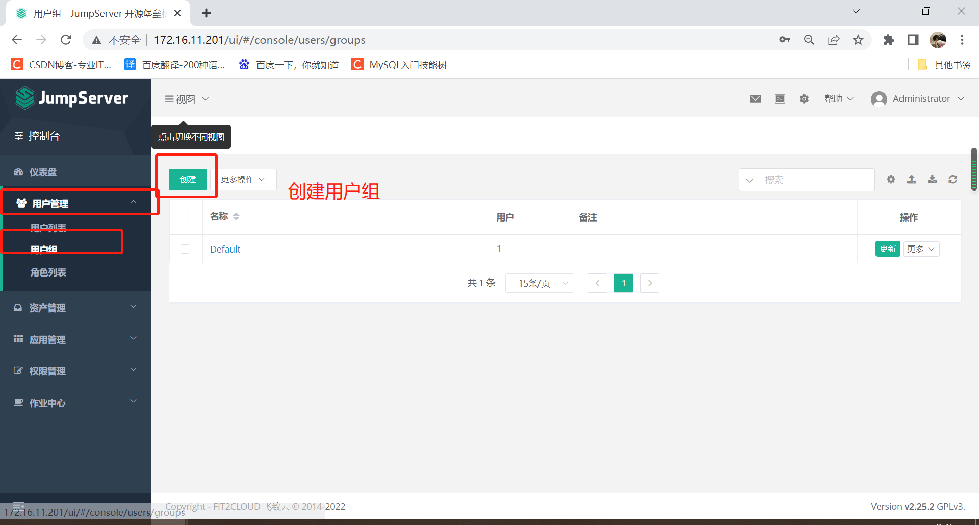 创建完成用户之后,我们可以设置用户组,就比如在公司你是哪个部门的,给你分配部门;