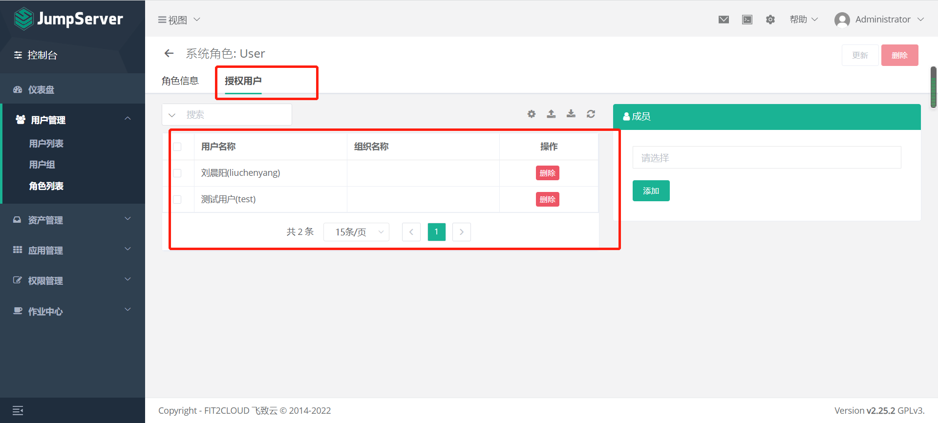 进入用户,点击授权用户就可以看到刚刚设置的用户了;
