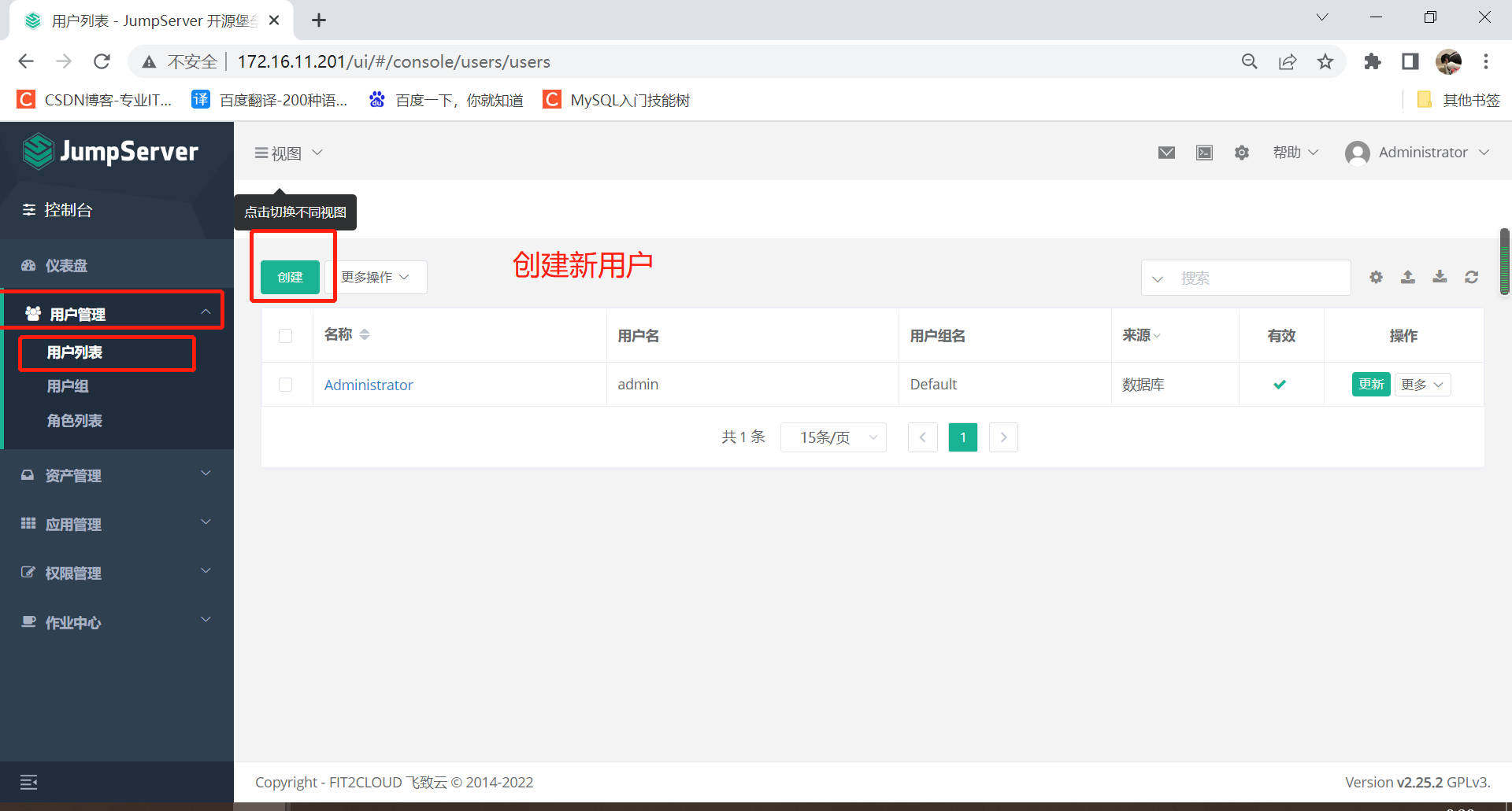 #切换都没问题,证明添加用户和设置用户权限成功在服务器上设置完成之后我们返回到web页面上来创建特权用户;