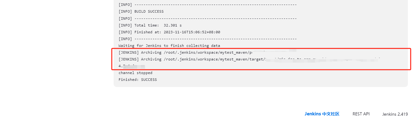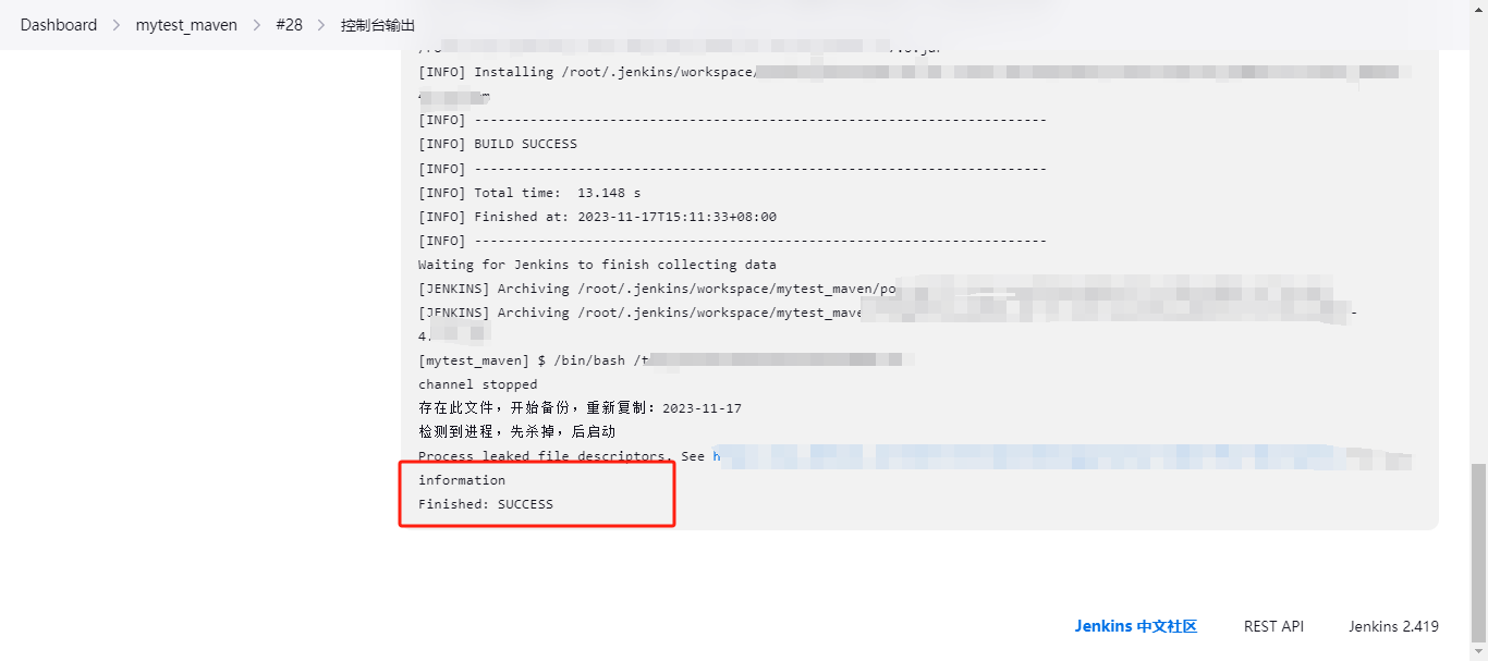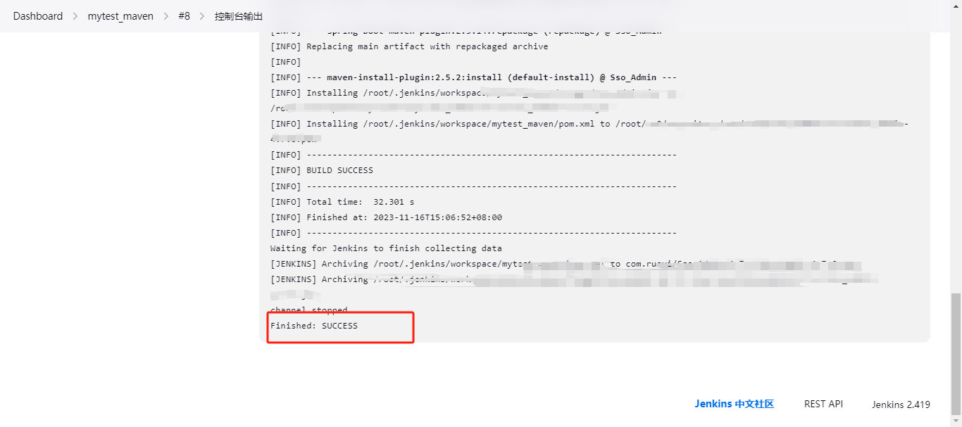 输出Finished: SUCCESS 则为执行成功。