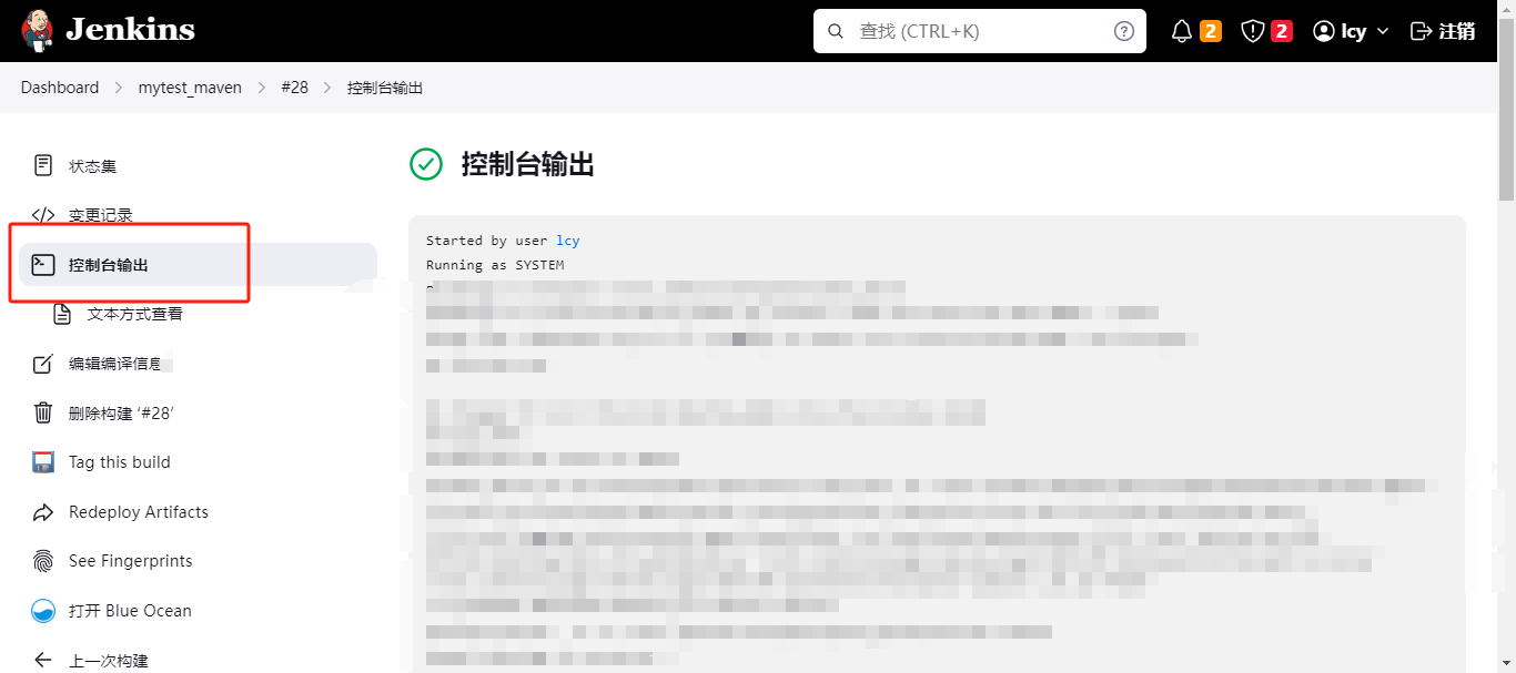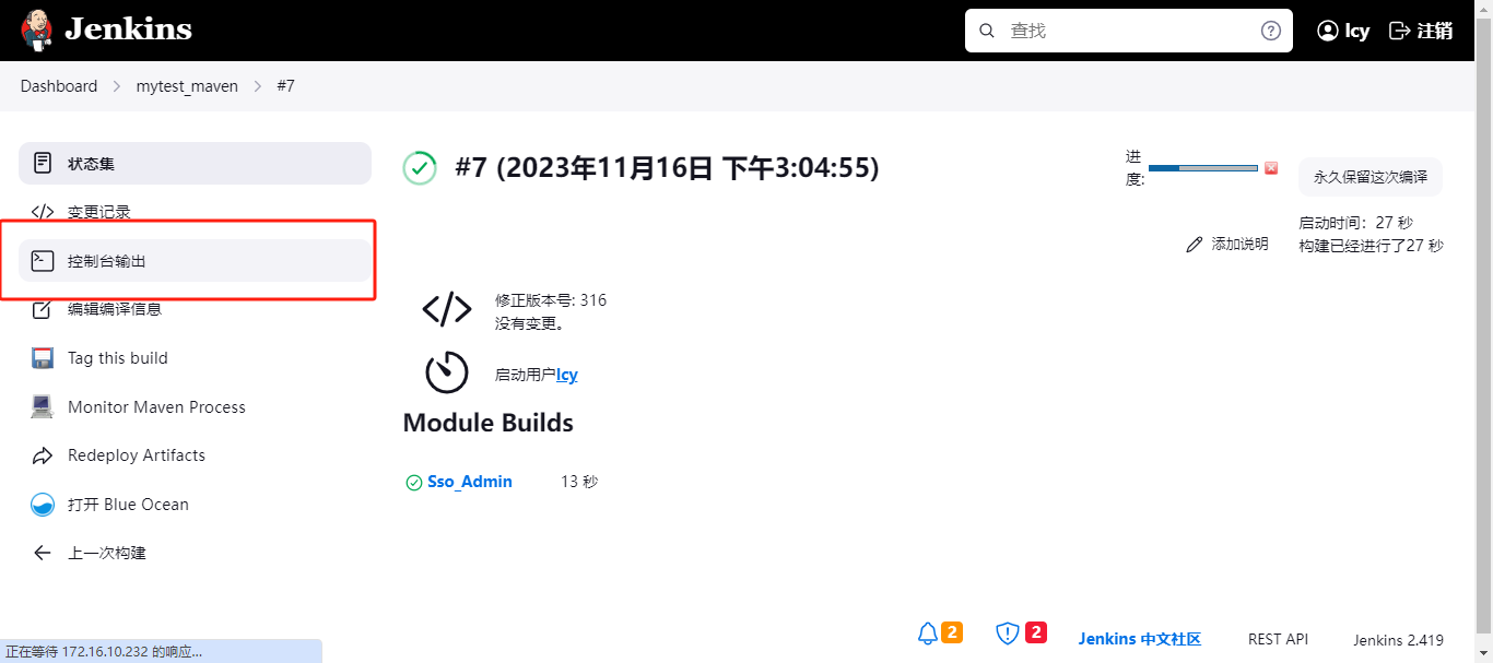 往下拉,看到这个,点进去,然后点击控制台输出,就可以看到构建过程了。