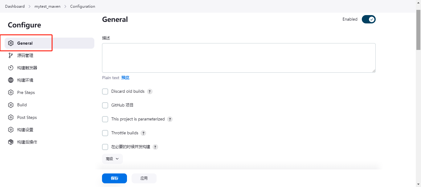 保存完之后,看到左边有一个build now,然后点击build(构建)就可以了;