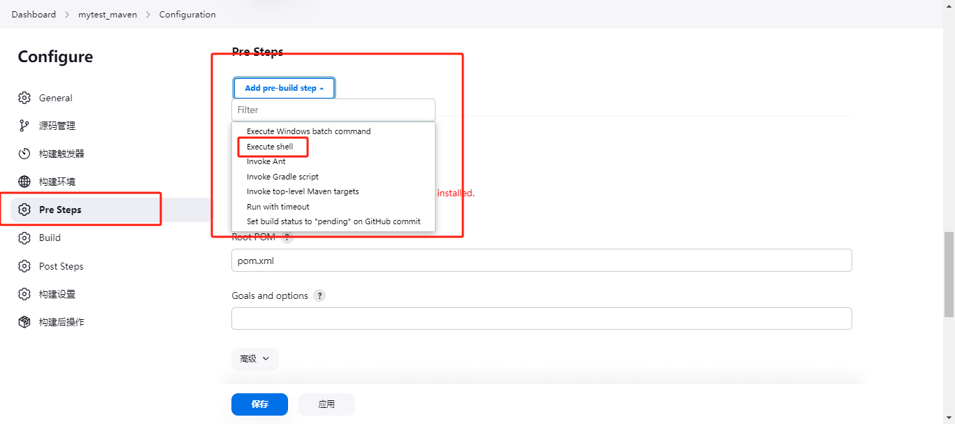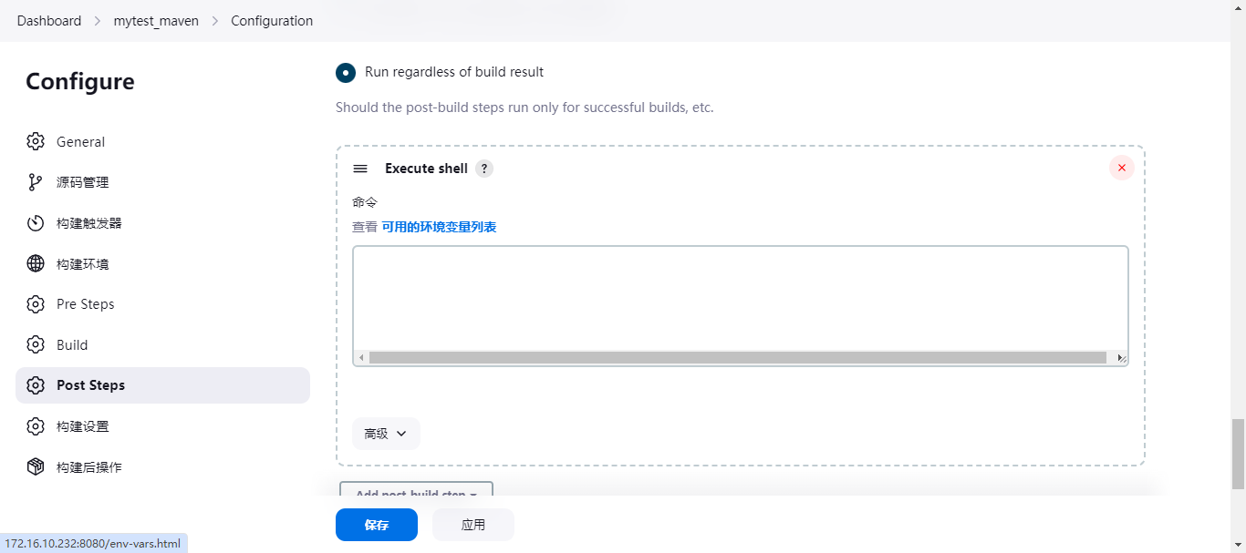 - 选择执行shell,写个shell脚本(也可以使用ssh方式,自己定义)