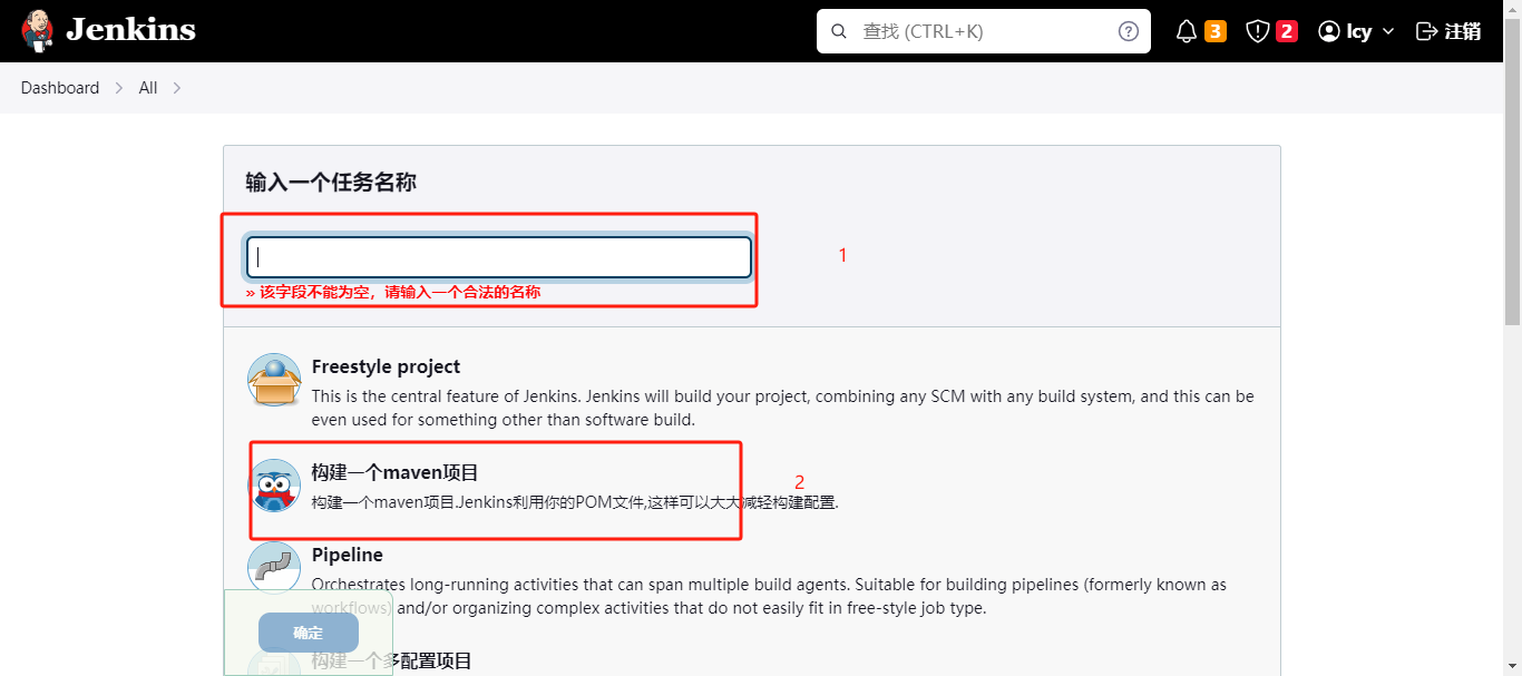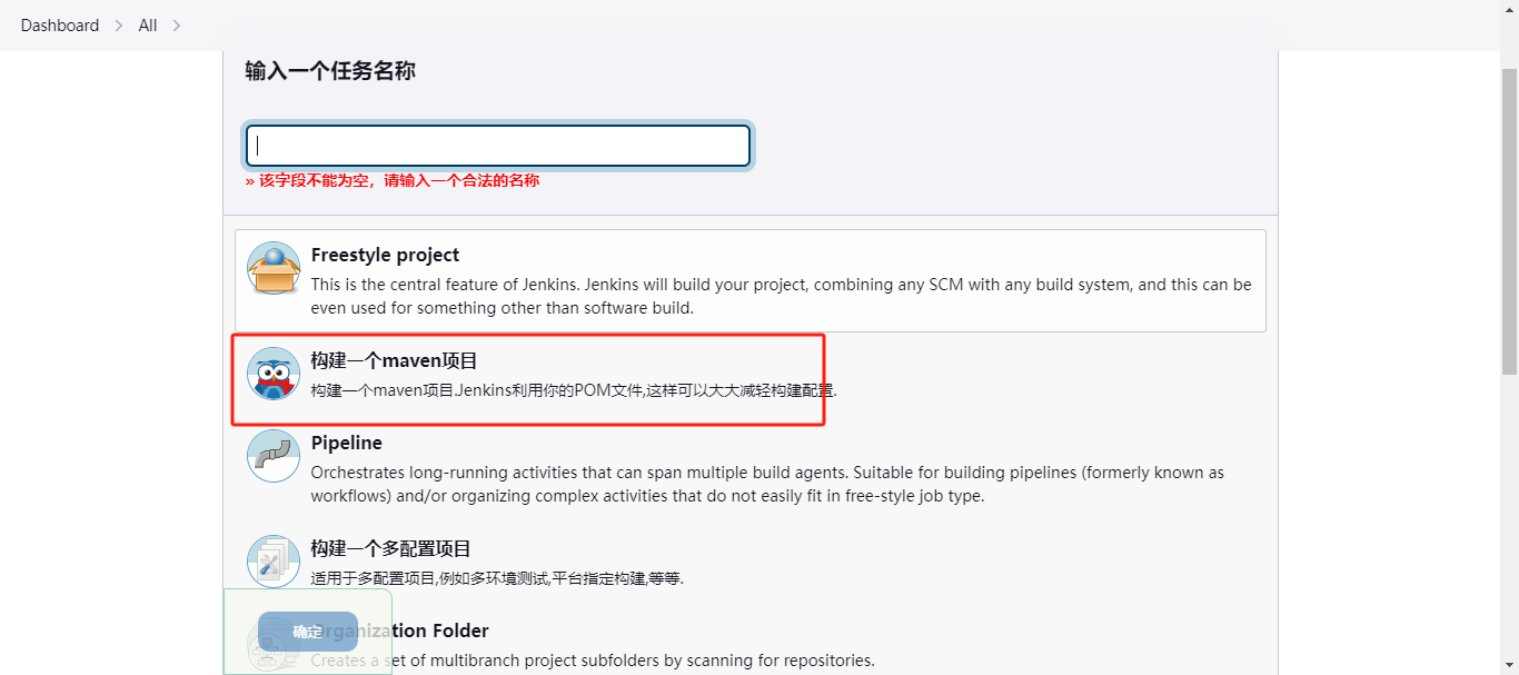 安装完成之后,在新建Item 那块就可以看到maven了。如下↓