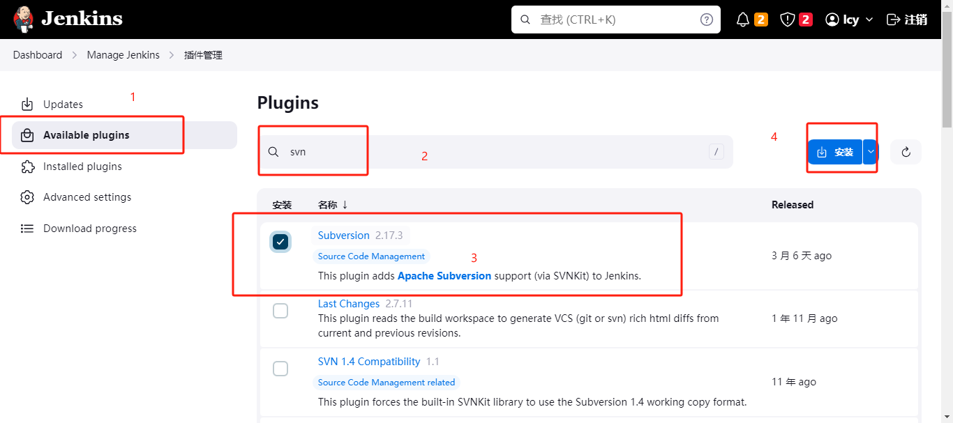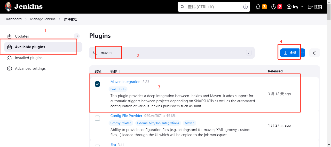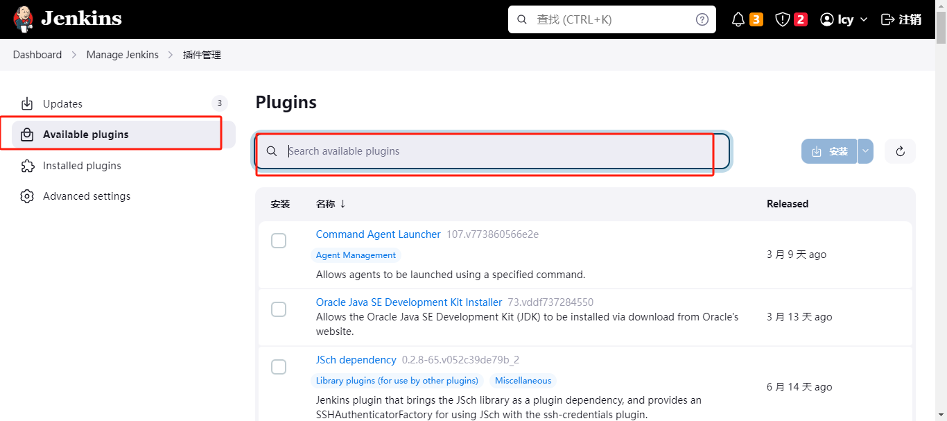 点击 Manage Jenkin --> Plugins(插件) --> Available plugins(商店)
