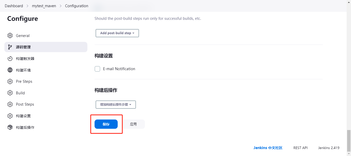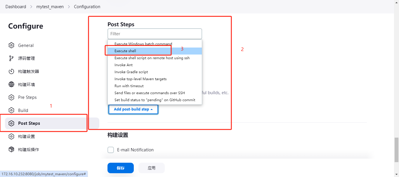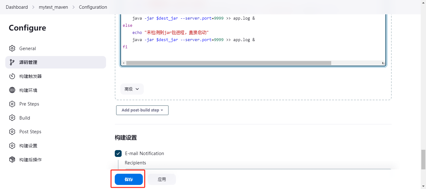 这里可以配置电子邮件通知。比如失败,成功,都可以进行发送邮件来通知提醒。