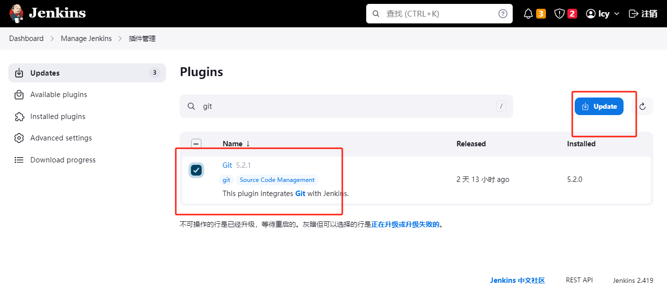 一般在部署完成,访问的时候选择默认安装插件基本都会装 -- git。