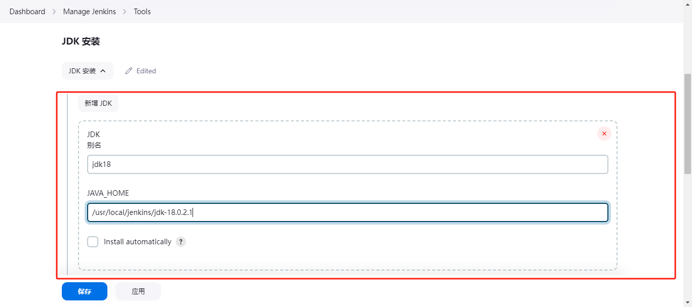 | jdk版本 | 18、1.8 | 18(用于运行Jenkins)、1.8(用于运行jar包) |