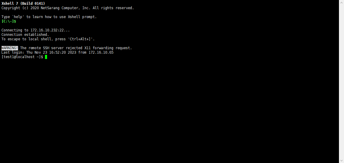 drwx------ 2 test2 test2 62 11月 23 16:57 test2可以看到设置成功了,这时候我们就可以继续使用普通用户登录了;