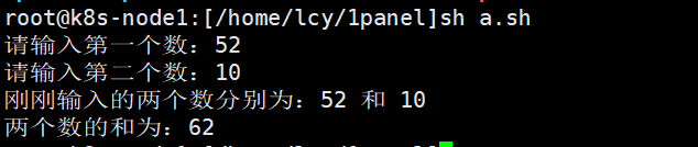 echo "刚刚输入的两个数分别为:$num1 和 $num2"