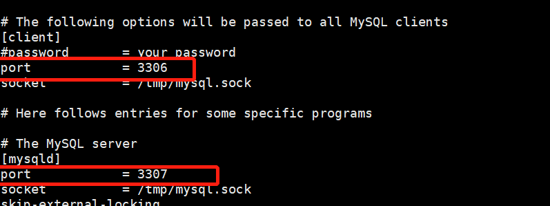 cat /etc/my.cnf找到port,注意my.cnf可能会有两个port,一个是[client]下的,一个是[mysqld]下的,修改[mysqld] 下的port即可,client下的也可以修改,主要是[mysqld]下的生效;