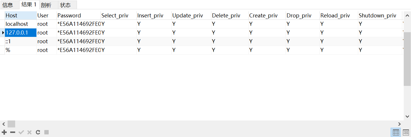 select * from user;可以看到本地和远程都可以连接到该数据库,那么下来我们就给他做限制;