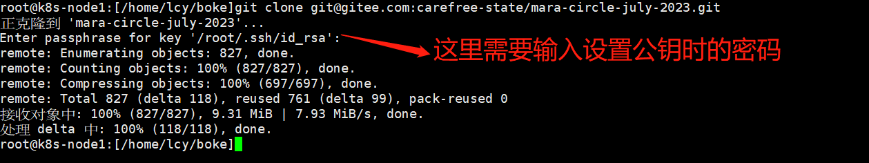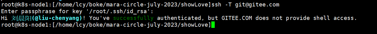 ssh -T git@gitee.com这里需要输入自己设置公钥时的密码;最后出现access即成功。