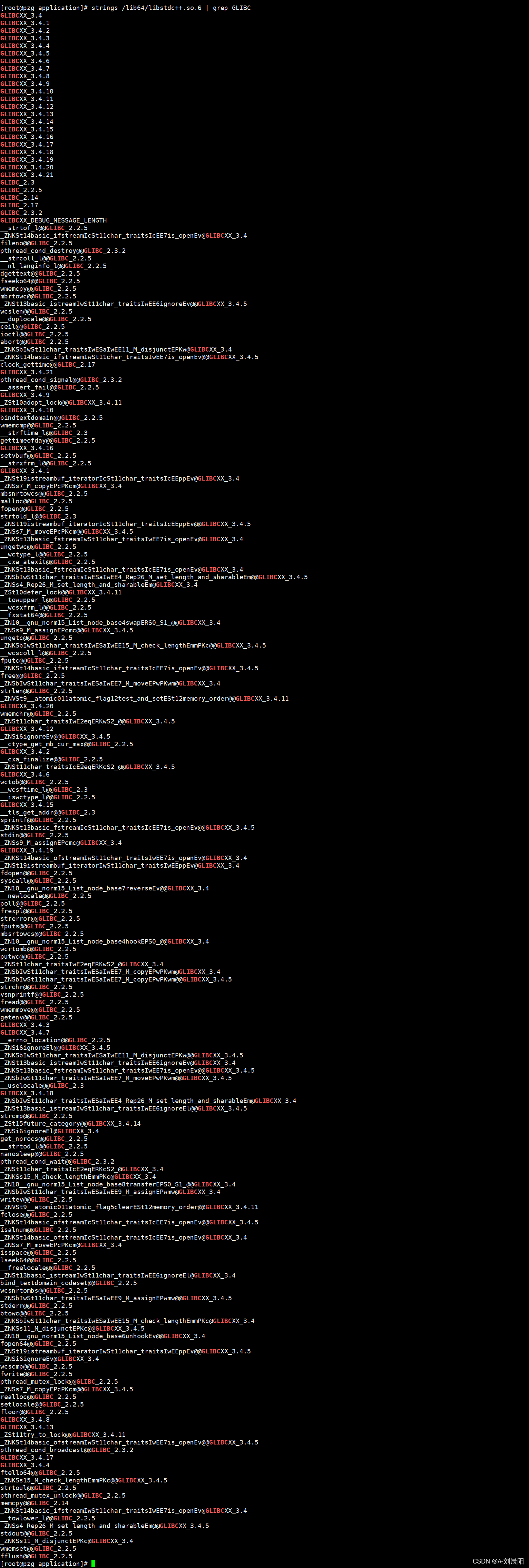 strings /lib64/libstdc++.so.6 | grep GLIBC