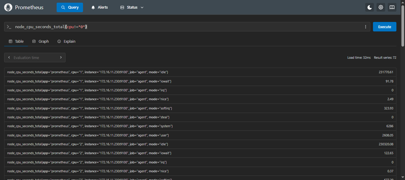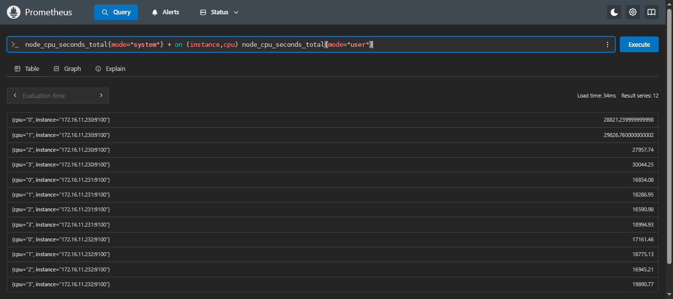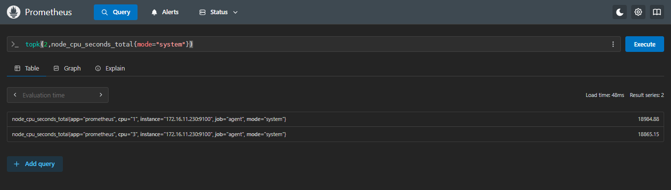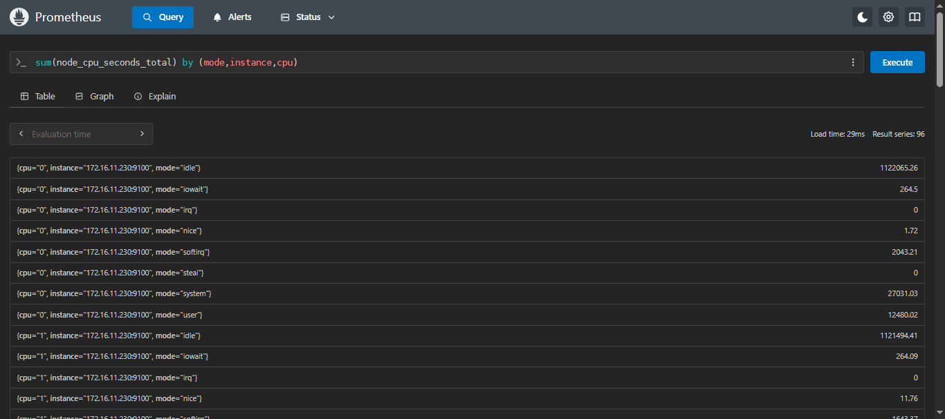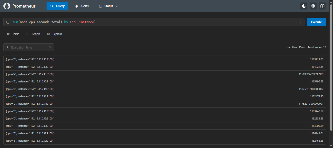 sum(node_cpu_seconds_total) by (cpu,instance)这个查询会按