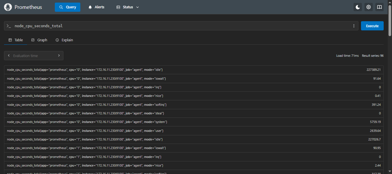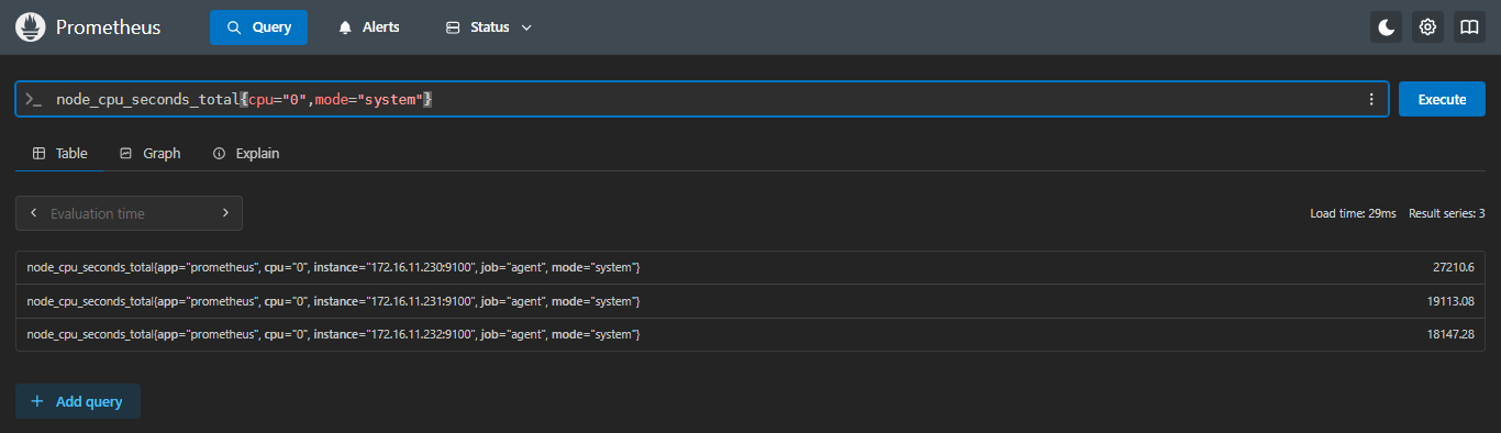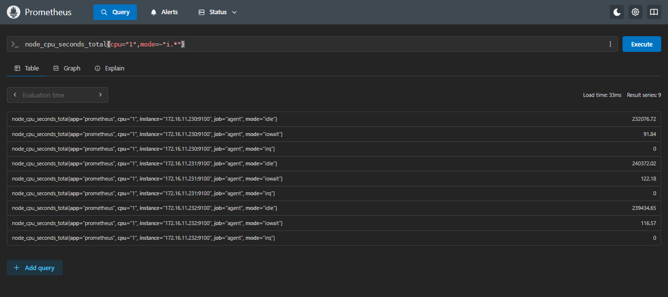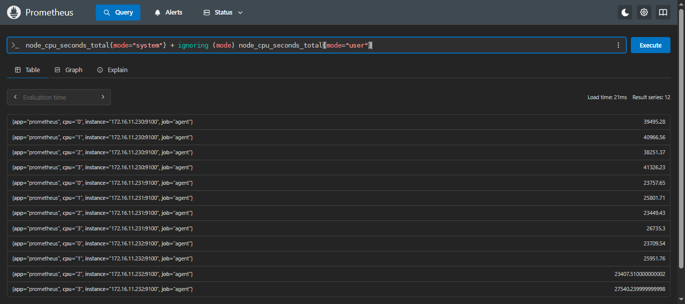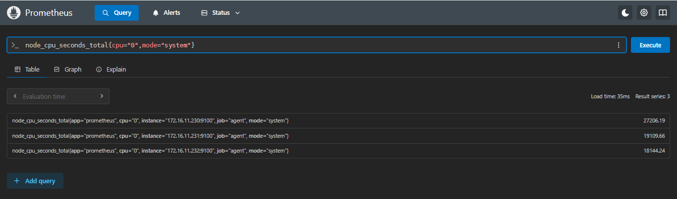 sum(node_cpu_seconds_total) by (cpu,instance)这个查询会按