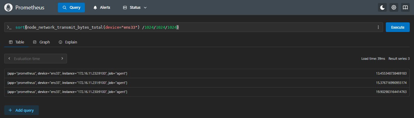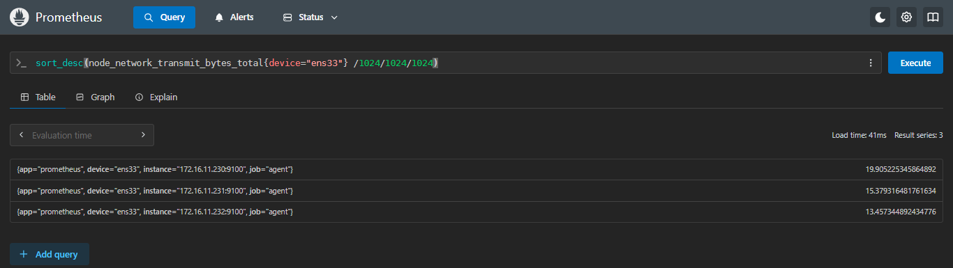 sort_desc(node_network_transmit_bytes_total{device="ens33"} /1024/1024/1024)