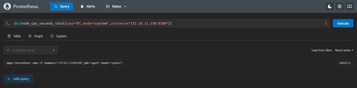 abs(node_cpu_seconds_total{cpu="0",mode="system",instance="172.16.11.230:9100"})- 绝对值前