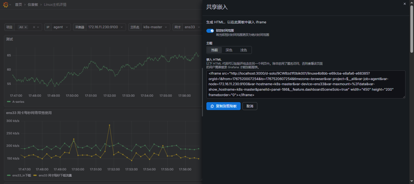 - 如果看到一个面板不错的话,想用这个面板再单独做一个数据展示,这时候就可以复制这个面板,然后到这里点击粘贴面板。