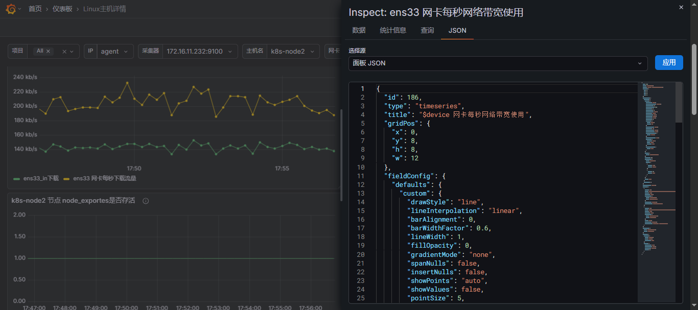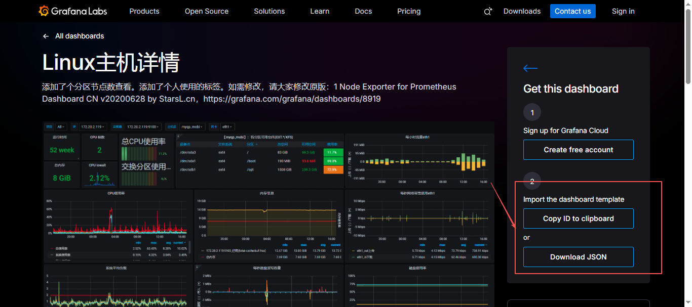 ID或者JSON文件导入到grafana中即可;