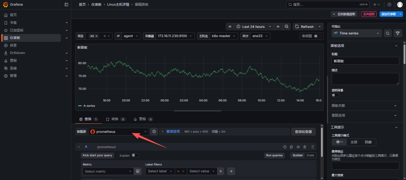 这里改成部署prometheus的ip:9090;