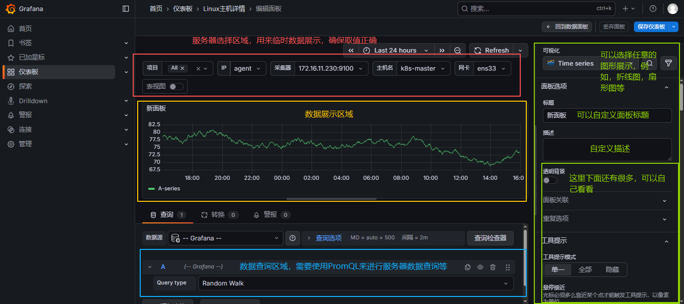 - 使用场景: 当你需要展示特定数据的图表或表格时,你可以添加一个新的面板,并在其中编写查询和设置可视化选项。