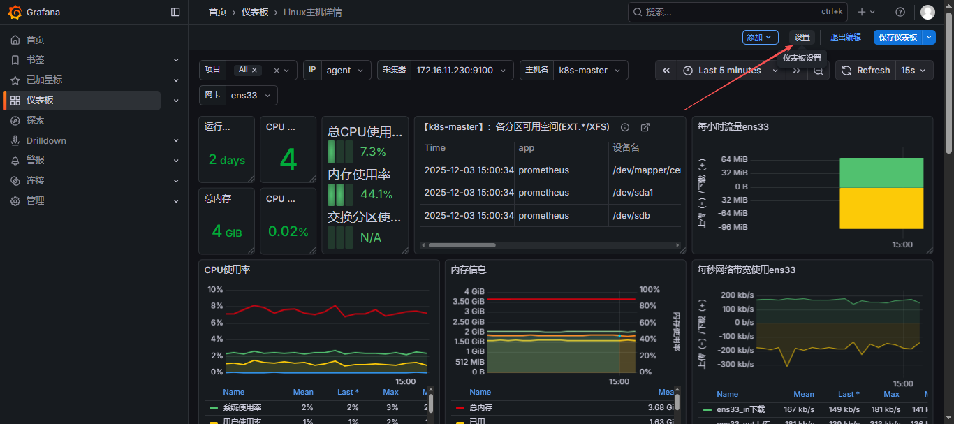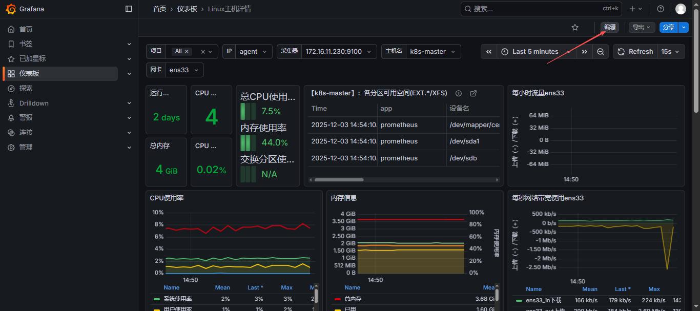 node_exporter; - 也可以修改刷新时间,点击
