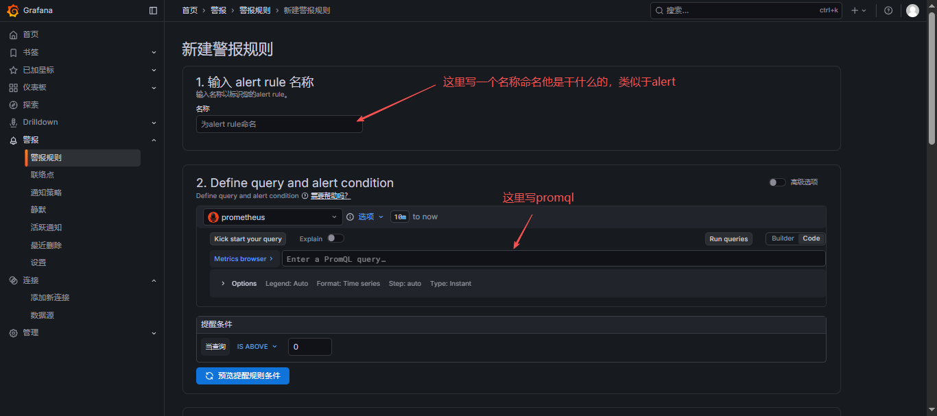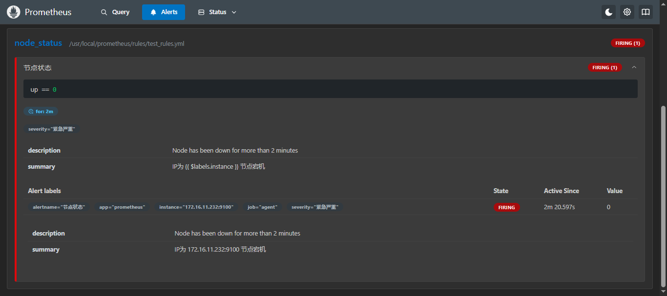 前提是Prometheus必须配置好Alertmanager 告警工具并引入告警规则;