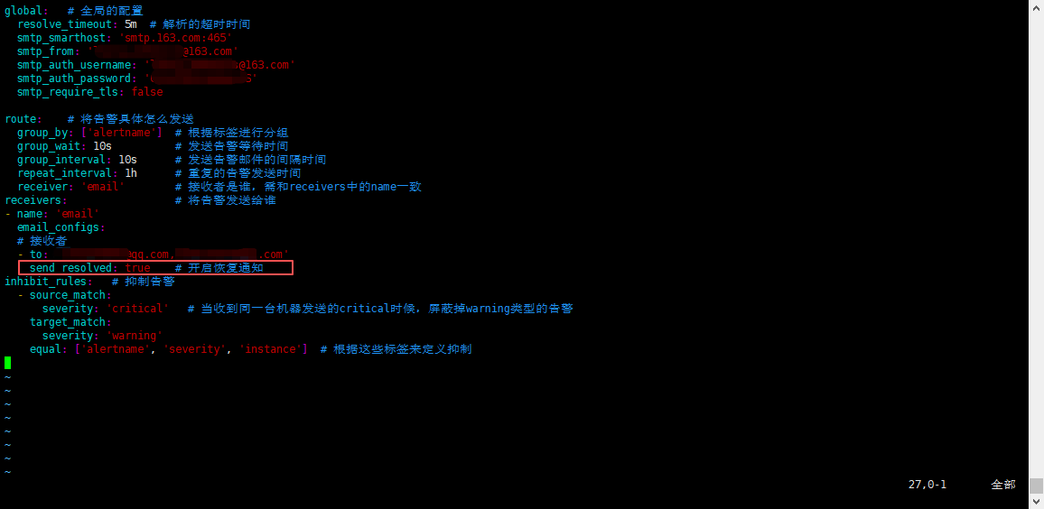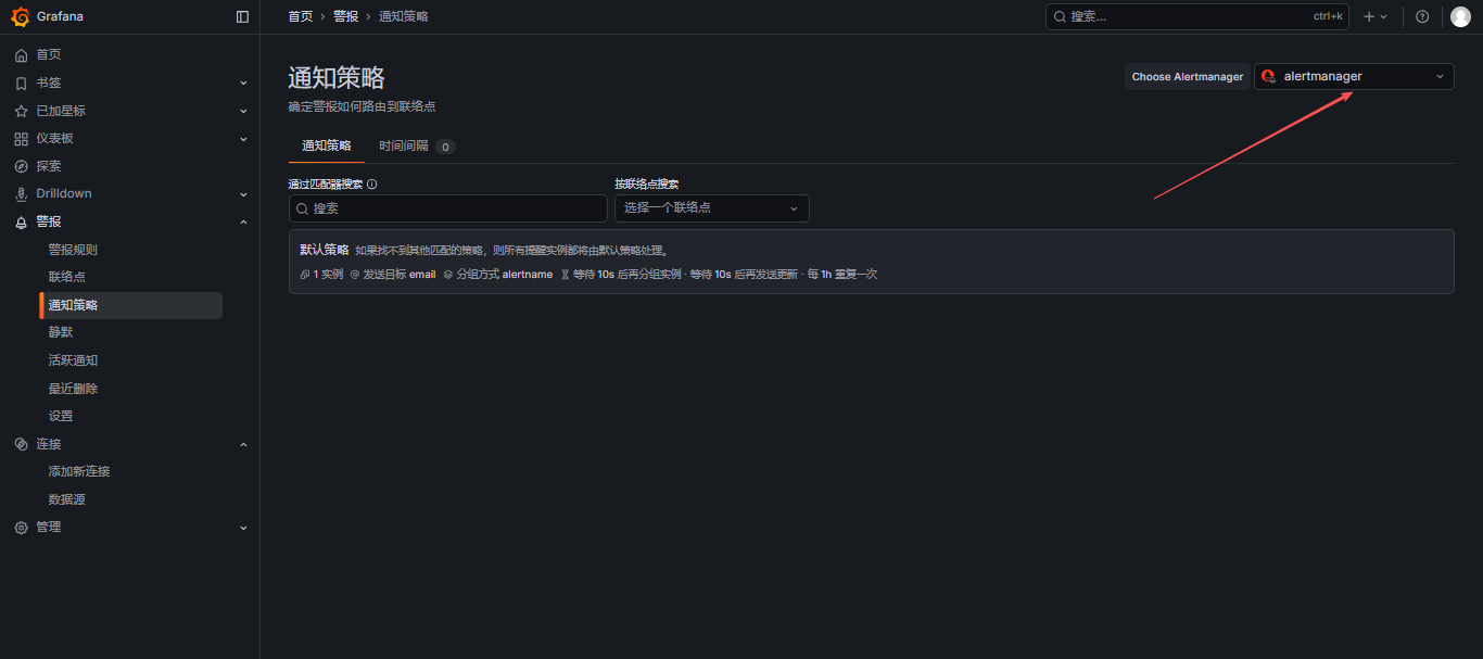选择alertmanager,这里可以看到在服务器上配置的邮件信息,这里只可以查看,不可以修改;