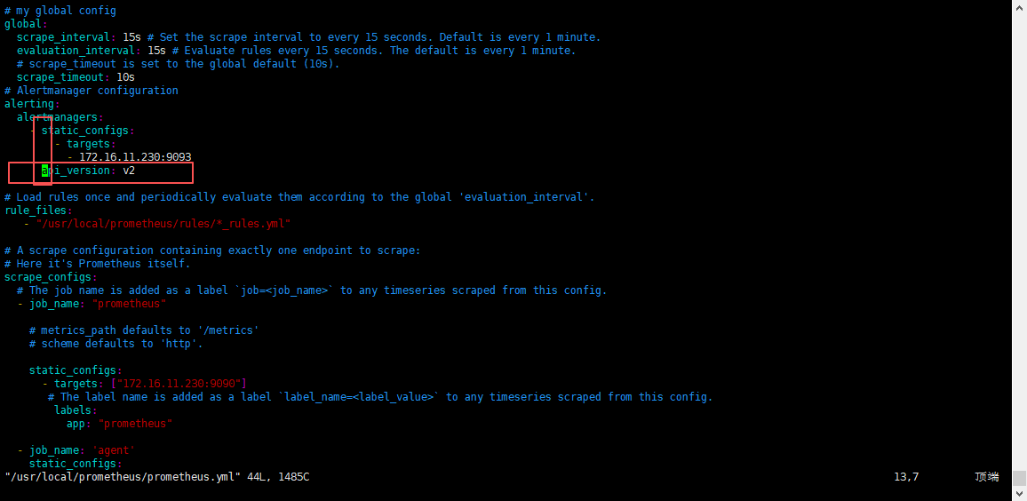 因为现在的Alertmanger使用的是 0.30.0 版本,而从 alertmanager 0.27.0 版本开始,就已经彻底把v1 API 移除了。因此,如果大于0.27.0版本,就需要在 Prometheus配置文件中使用 v2 API,