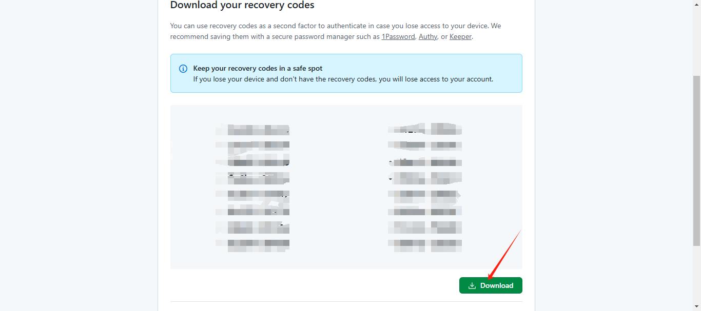 - 下载您的恢复代码