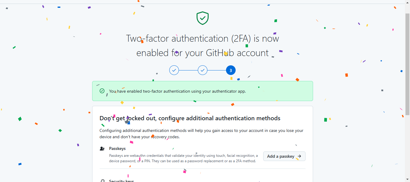 I have saved my recovery codes就开启了2FA双重认证了。