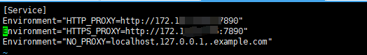 Environment="NO_PROXY=localhost,127.0.0.1,xxx.com"【注】HTTP_PROXY 用于代理访问 http 请求,HTTPS_PROXY 用于代理访问 https 请求,如果想某个 IP或域名不走代理则配置到 NO_PROXY中。