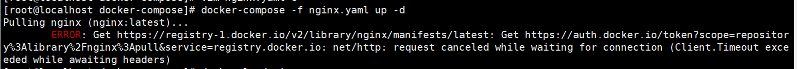 Error response from daemon: Get "https://registry-1.docker.io/v2/": net/http: request canceled while waiting for connection (Client.Timeout exceeded while awaiting headers)- docker-compose 创建拉取镜像