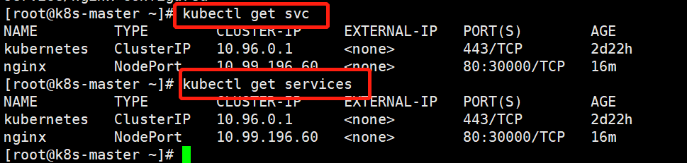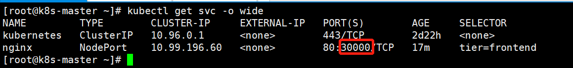 EOF如果不加nodePort也就是不指定nodeport,默认会随机输出端口,可以通过kubectl get svc查看;