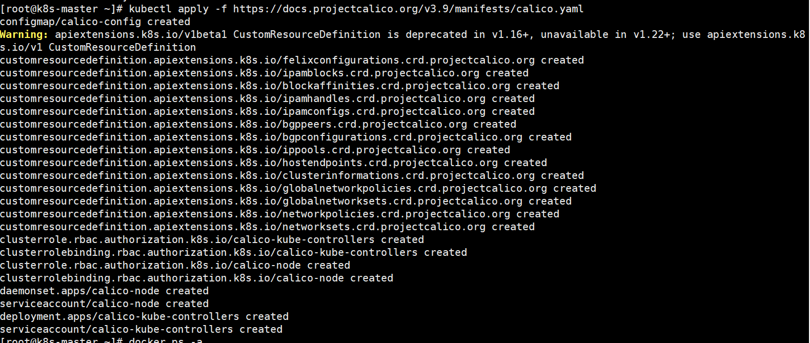 现在的集群状态都是NotReady表示不可达;这是因为还没有安装网络插件,下面我们来安装一下网络插件(caclico)