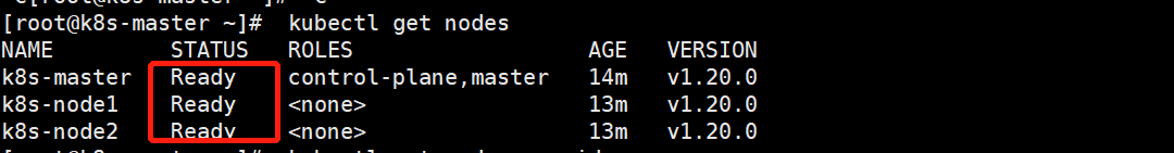 安装完成之后,再次返回master节点查看集群,在主节点执行命令看集群是否成功