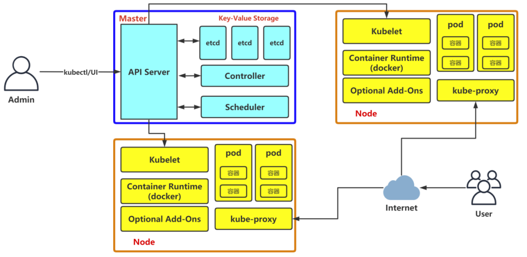 提供了资源对象的唯一操作入口,其他所有组件都必须通过它提供的API来操作资源数据,只有API Server与存储通信,其他模块通过API Server访问集群状态。