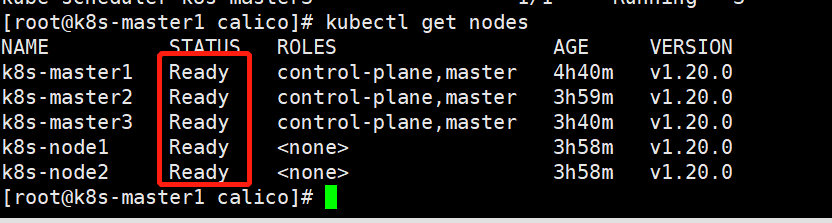 现在的集群状态都是NotReady表示不可达;这是因为还没有安装网络插件,下面我们来安装一下网络插件(caclico)